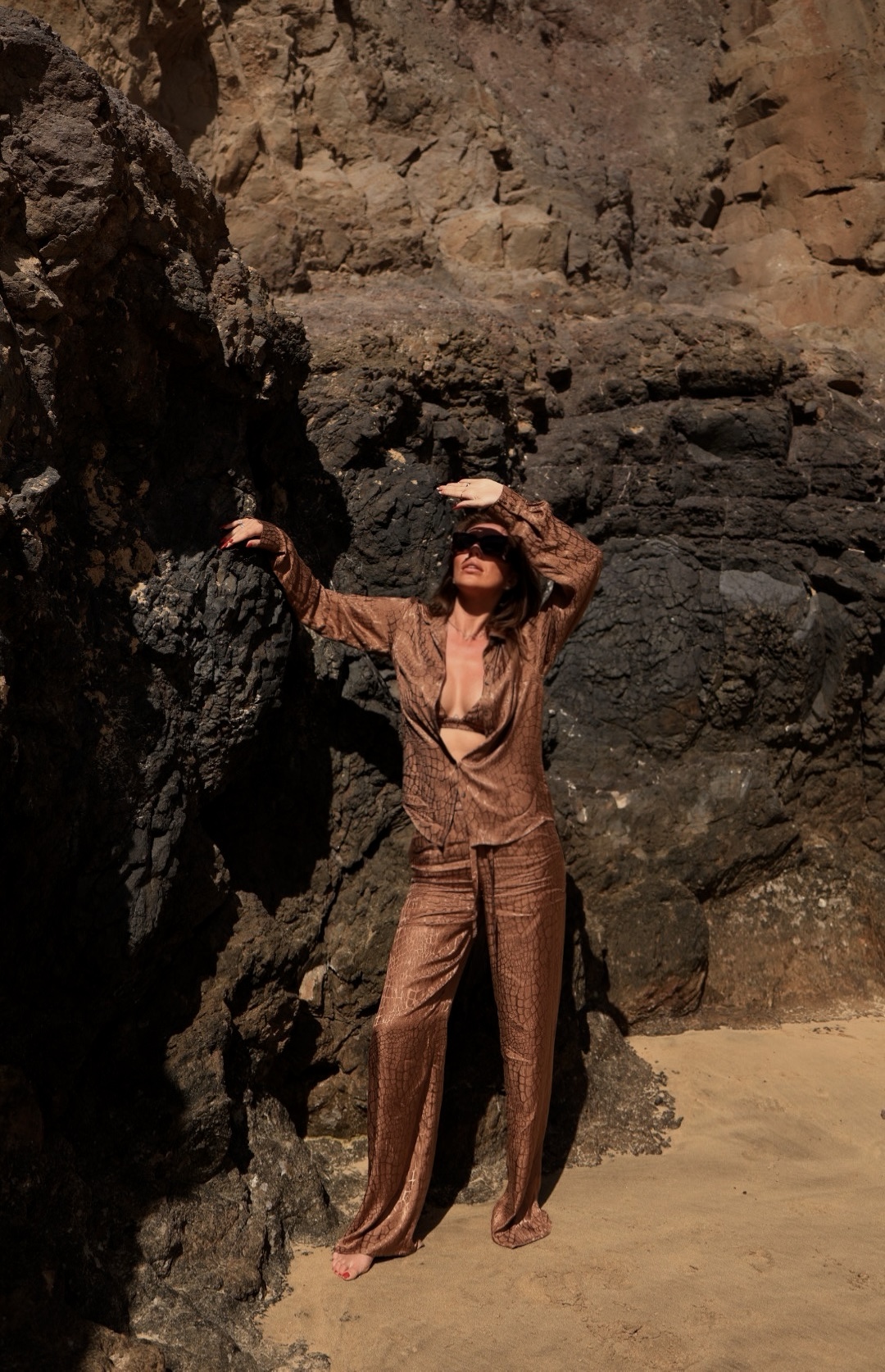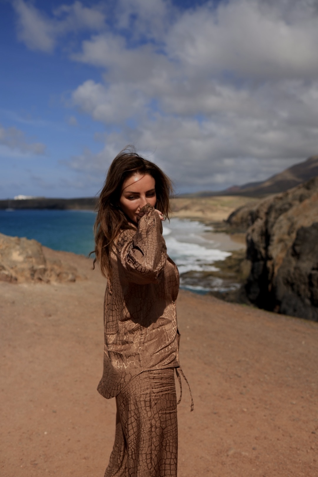 Komplet złożony z trzech części wykonany został ze szlachetnej włosie wiskozy