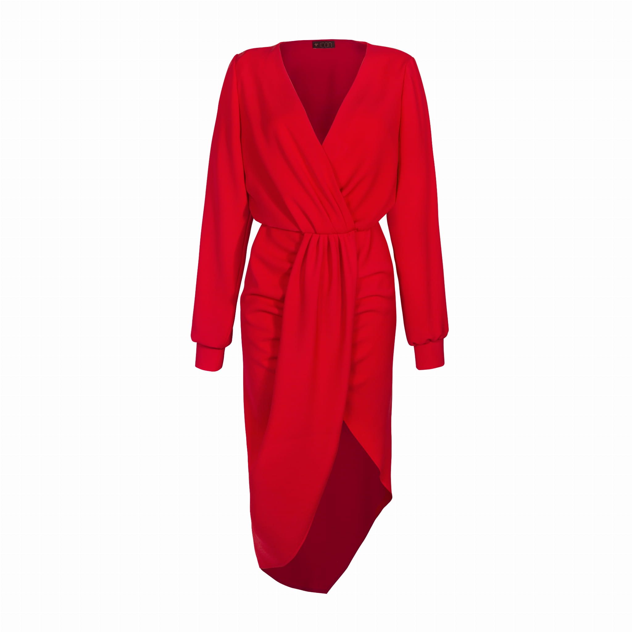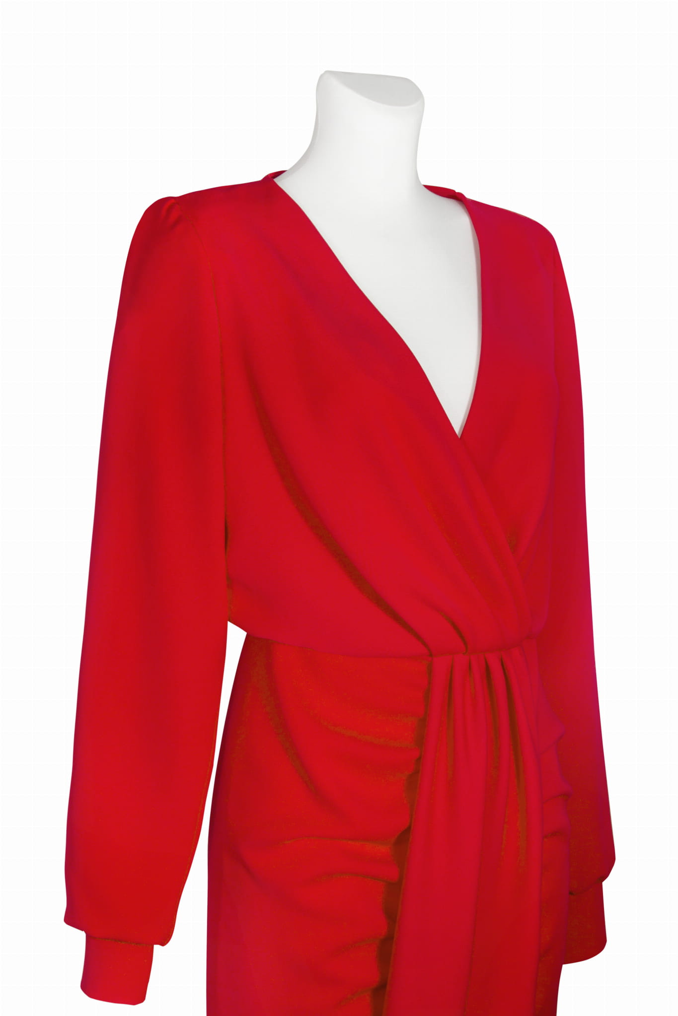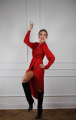 Piękna kobieca sukienka w klasycznej formie i cudownej soczystej czerwieni